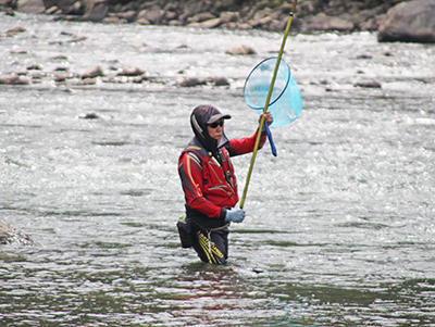 11日に日高川町原日浦で友釣りを楽しんだ大阪の50代男性は、「毎週のように日高川に来ています。この前の日曜に釣りに来ることができなかったので、きょうは会社の休みを取って来ました。川に入って釣りをするのは気持ちいいし、とても楽しいですね」と話していた。
