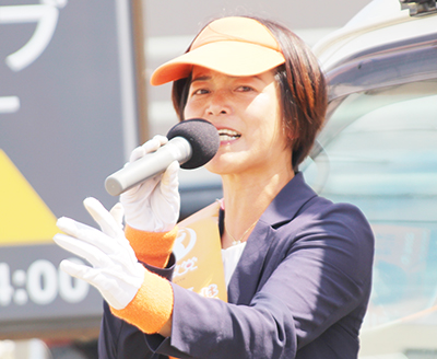 参政党の林元政子候補(51)は15日、御坊市のオークワロマンシティ御坊店前で公示後2回目の街頭演説を行った。