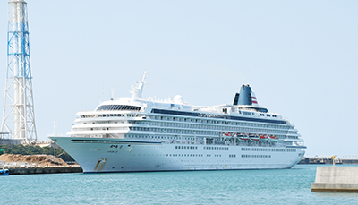 30日朝、ロシアカムチャツカ半島付近で発生したマグニチュード8・7の地震に伴う津波警報を受け、御坊市沖で日高港への入港を待機していた国内最大級の客船「飛鳥Ⅱ」=総㌧数5万444㌧=は、警報が注意報に切り替わったことで県の許可を受けて翌31日午前6時半、同港に無事入港した。