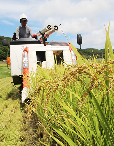 22日にも早場米の栽培が盛んな日高町志賀地区で、同町の組合員から農作業を請け負うJAわかやま紀州地域本部の農援隊が稲刈り作業を実施。地元の農家から依頼のあった17㌃の田んぼに植えられたキヌヒカリをコンバインで刈り取った。