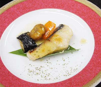 仕入れを検討している雲水で試食が行われ、事業者の谷久保さんや清水さんら4人が同店で調理された刺身、押し寿し、バター焼き、焼き物、から揚げ、せいろ蒸し、椀物の7品を試食した。