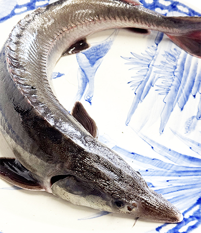 清水さんが、谷久保さんが水槽で飼っていたコイを見て「チョウザメを養殖してみてはどうか」と提案したことがきっかけ。現在は4000~5000匹が養殖され、大きなチョウザメは1㍍程度にもなる。うち、魚肉として出荷できるようになったのは卵(キャビア)を持たないオス(3年以上)の約250匹で、出荷先は町内の料理店などを考えているという。
